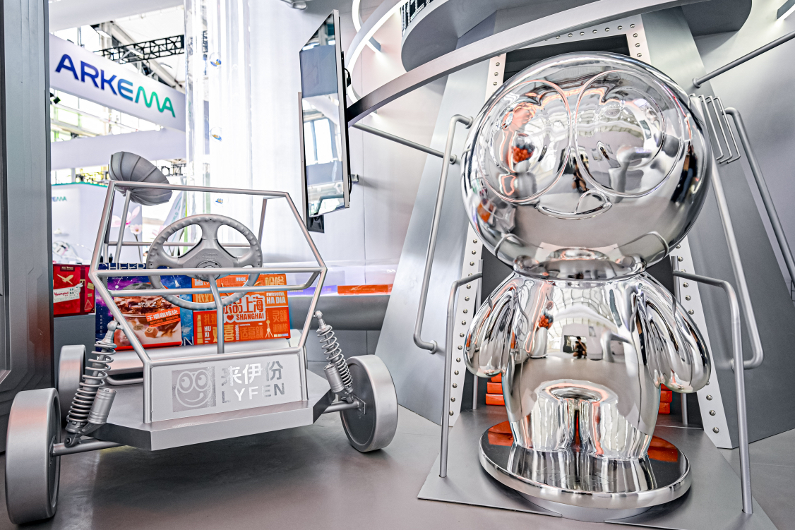 展台现场,来伊份品牌IP“伊仔”以宇航员造型亮相,生动扮演着连接品牌与年轻受众的情感桥梁。