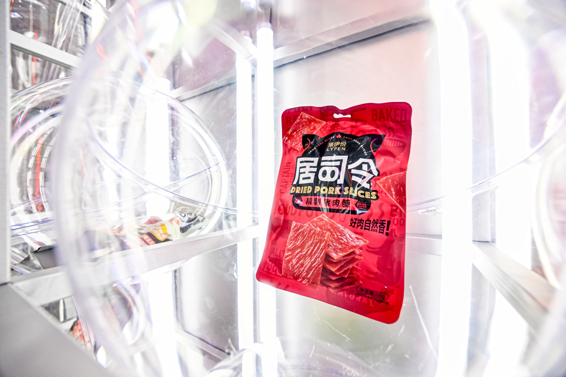 来伊份还将设计思维应用于产品包装和产业链优化,通过可视化设计展示ESG成果。以现场展示的明星产品“居司令猪肉脯”为例,包装创新采用“单一聚烯烃结构”取代传统复合膜,直接解决食品包装领域最大的回收难题,实现塑料减量17%。